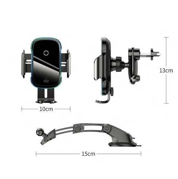 Baseus Light Electric Qi 15W Auto Alignment Wireless Charger 2 in 1 Car Holder Black – WXHW03-01