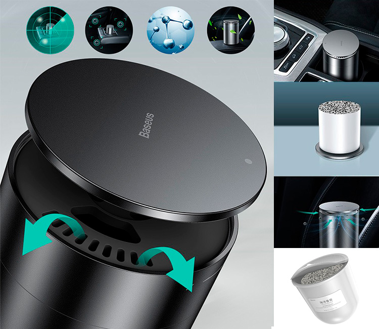 Baseus Minimalist Car CupHolder Air Freshener with Formaldehyde Purification Function Black (Cologne Flavor) – SUXUN-CL01