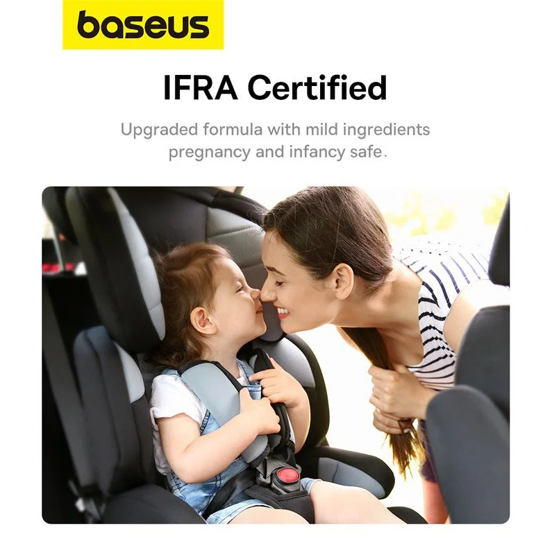 - Baseus T-Space Series Car Air Freshener has many different fragrances to choose from, from floral, fruity to natural scents. It helps eliminate odors in the car and brings a smooth and refreshing space when driving.