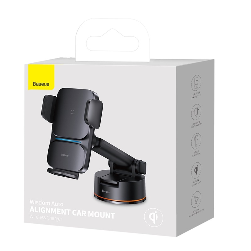 Baseus Wisdom Auto Alignment QI 15W Car Mount Wireless Charger – Suction base – Black