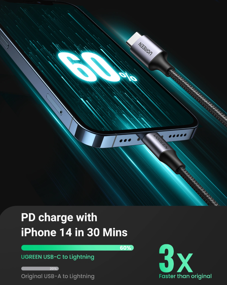 UGREEN 1 Meter MFI Certified Type-C to Lightning Aluminum Shell Braided Cable – US304 – 60759