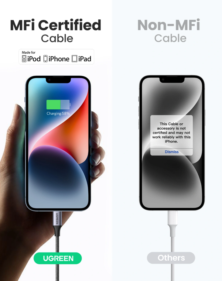 Apple MFi Certification guarantees full compatibility with iPhones, iPads, and other Lightning-enabled devices.