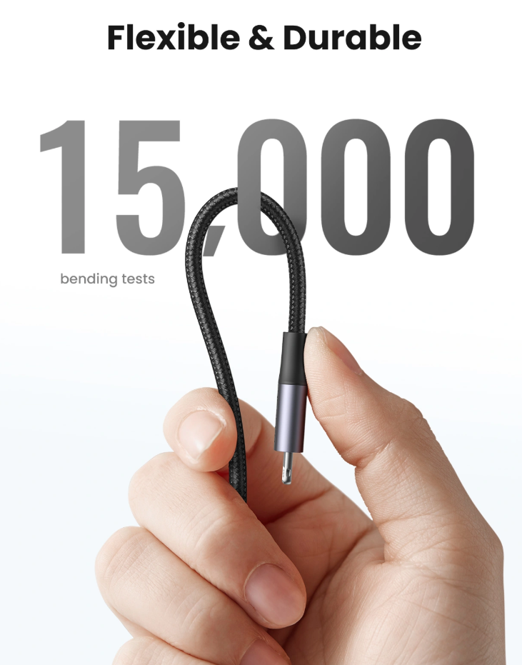 Constructed with a braided nylon jacket, making it flexible yet highly resistant to wear and tear.