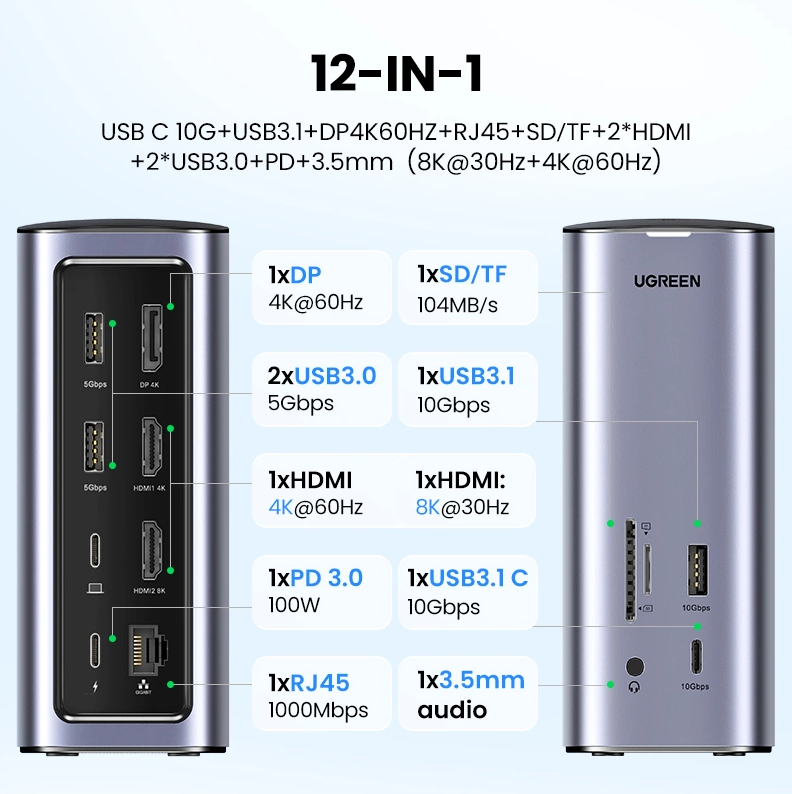 UGREEN 12 in 1 Type-C Multifunction Docking Station Pro – CM555 90325 – 90325