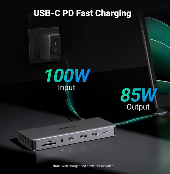 - 100W Power Delivery: Supports up to 85W USB-C pass-through charging via USB-C PD port, reserves 15W for other interface operation.