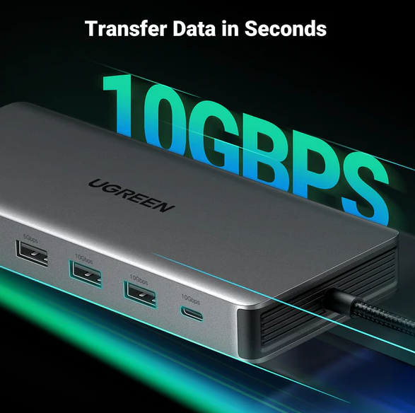 - Start the USB 3.2 Era: Transfer files, movies, and photos at speeds up to 10 Gbps via the USB-C data port and dual USB-A ports.The C port marked with 10Gbps can only be used for data transmission, and does not support video output or charging.