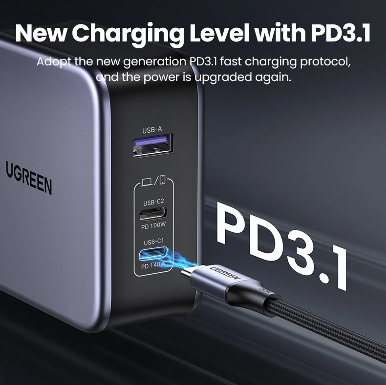 UGREEN 140W GaN Fast Charger with Type-C to Type-C 1.5Meter Cable – CD289 – 90322