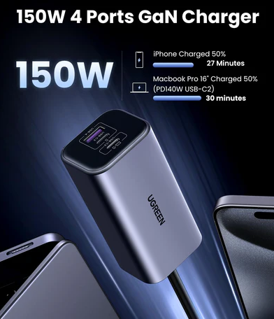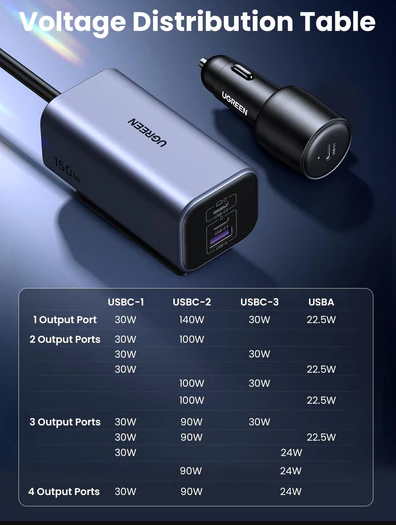 UGREEN 150W GaN 3xType-C And 1xUSB Port Car Charger – EC706 – 35571
