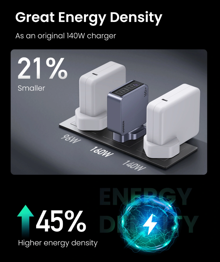 The latest GaN technology ensures faster, more efficient charging with reduced heat generation.