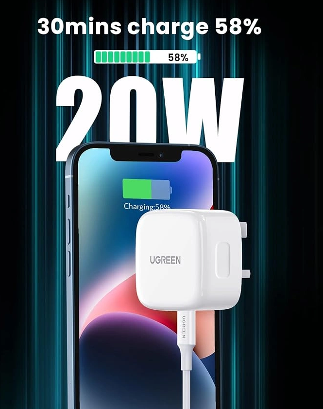 UGREEN 20W Type-C PD Fast Charger With Type-C to Lightning 1 Meter Cable Set – CD137 – 70297