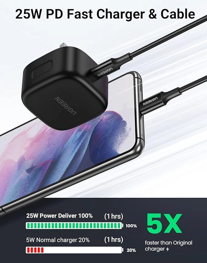 UGREEN 25W Type-C PD UK Pin Fast Charger With Type-C to Type-C 2 Meter Cable – CD250 – 50577