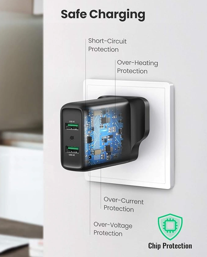 UGREEN 36W DUAL USB Fast Charging UK Adapter – CD161 – 70164