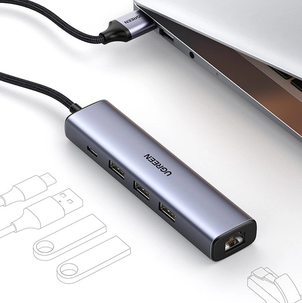 • USB-C to Adds 3 USB 3.0 ports and 1 RJ45 Gigabit Ethernet port