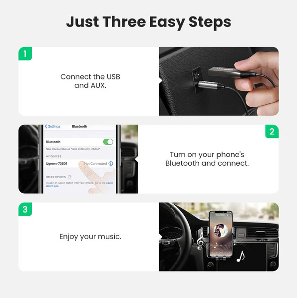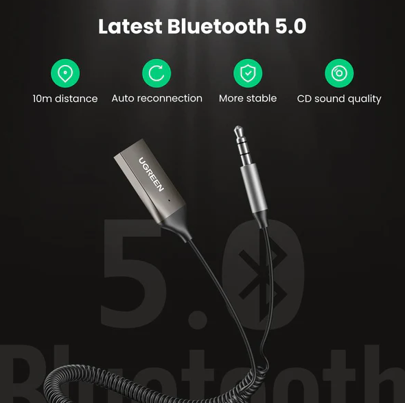 UGREEN 5.0 Bluetooth 3.5mm Aux Car Receiver with Mic – 70601