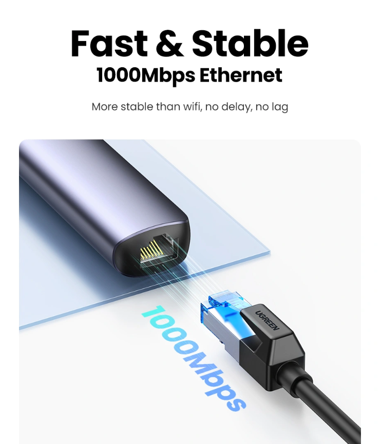 RJ45 Ethernet port supports 10/100/1000Mbps, delivering a stable and high-speed network connection for devices without built-in Ethernet ports.