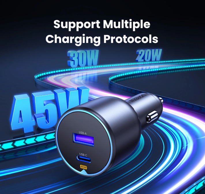 UGREEN 63W Type-C + USB Fast Car Charger – EC701 – 35023