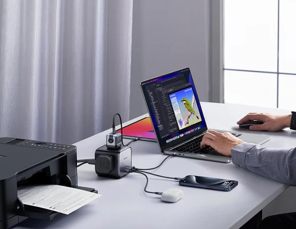 • 65W High-Speed Charging: Delivers up to 65W via USB-C, capable of charging a MacBook Pro 13″ to 36% in just 30 minutes.