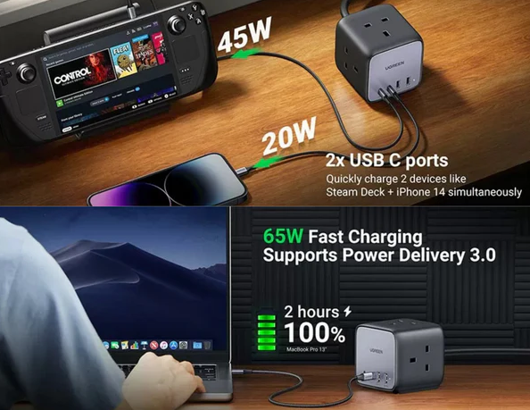 UGREEN 65W 7 Ports DigiNest Cube With UK Pin Power Strip Charging Station – 90906