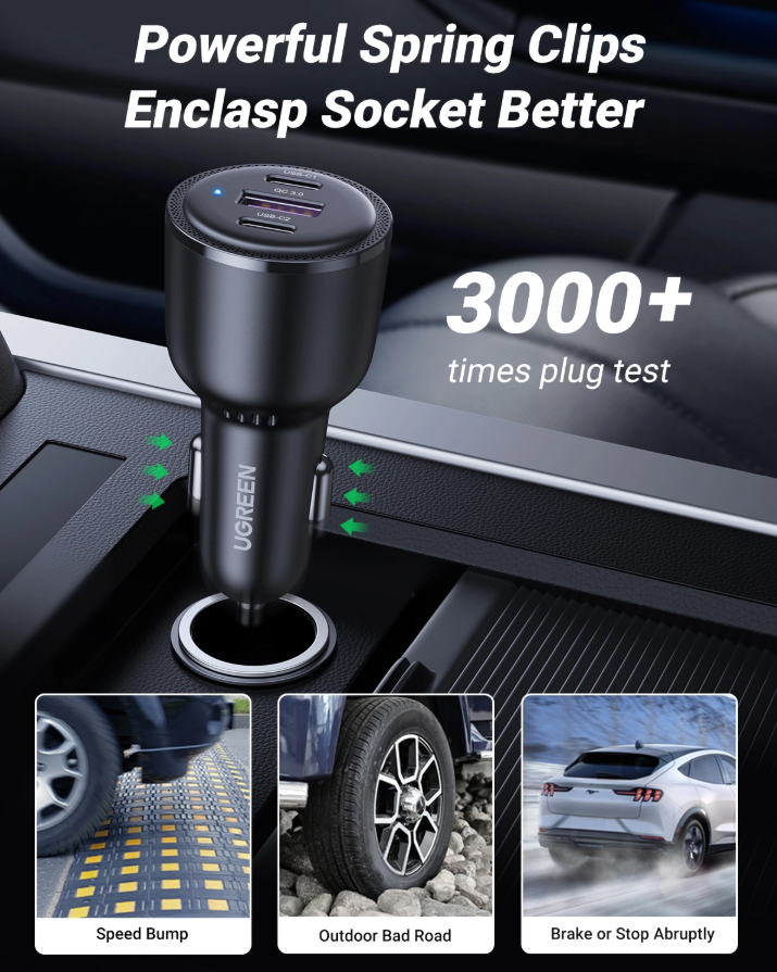 Secure and stable fit in your vehicle’s cigarette lighter socket, preventing disconnection while driving.