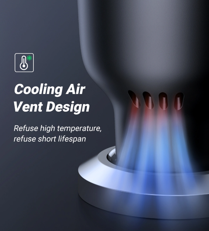 Tailored air vent design improves heat dissipation, keeping the charger cool during extended use.