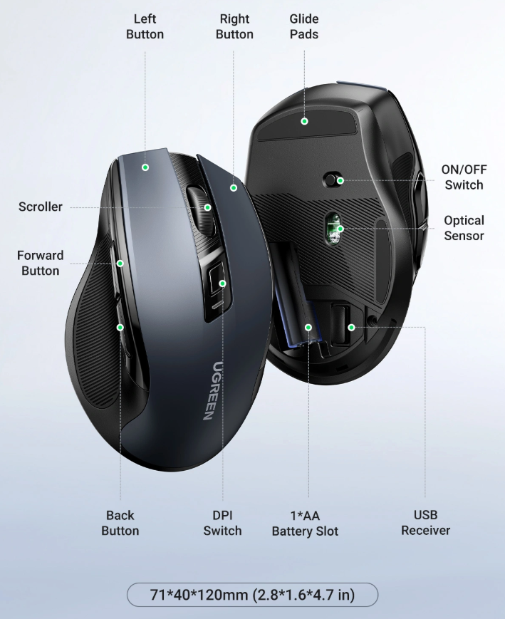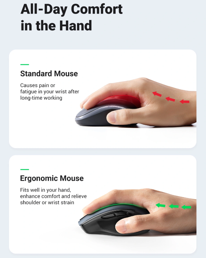 UGREEN Ergonomic Wireless Mouse 2.4G 4000DPI Silence Design – MU006