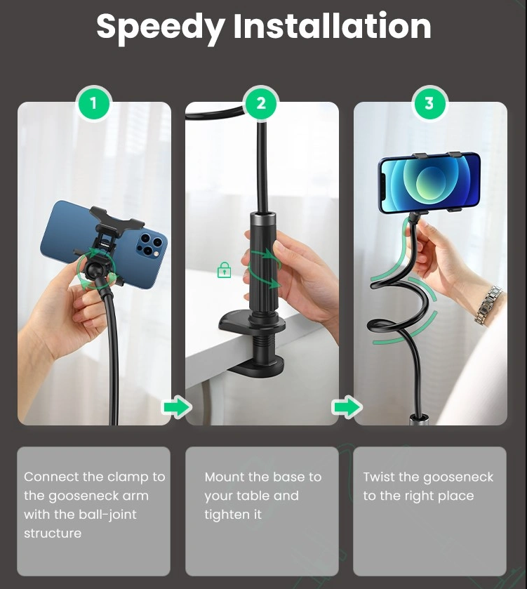 Base Clamping Range: 0-8 cm, making it easy to attach to tables, desks, headboards, or other surfaces securely without scratching.