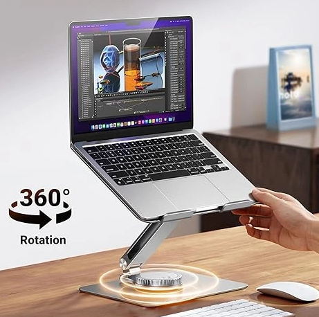 The stand supports 360? horizontal rotation, giving you the freedom to adjust your laptop’s position for different use cases. Whether you’re working, collaborating with others, or presenting, the swivel feature ensures maximum flexibility and convenience.