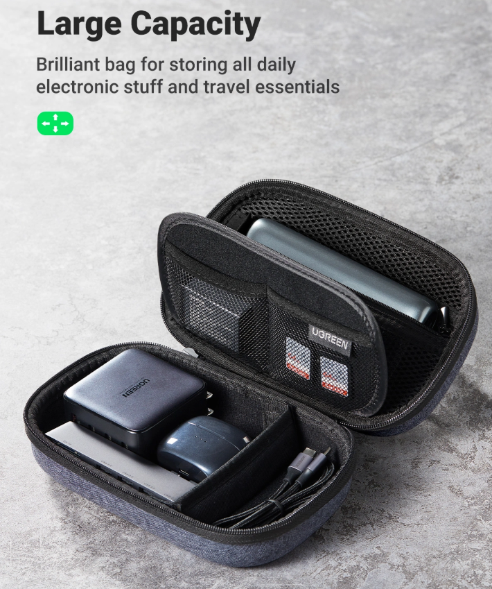 Despite its compact size, the case offers generous storage space, perfect for organizing a variety of small gadgets, cables, and accessories.