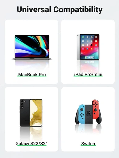 Universally compatible with a wide range of USB-C devices, including smartphones, tablets, laptops, and other gadgets, ensuring seamless operation across different brands.