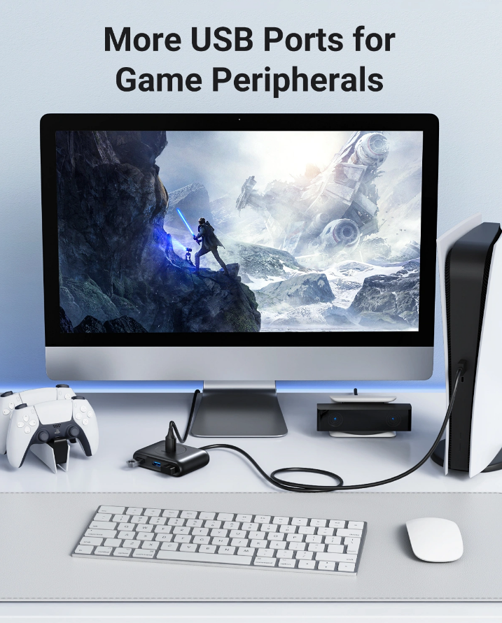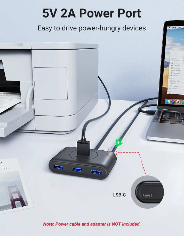 Features an additional 5V power port to ensure stable operation when connecting power-hungry devices like external hard drives.