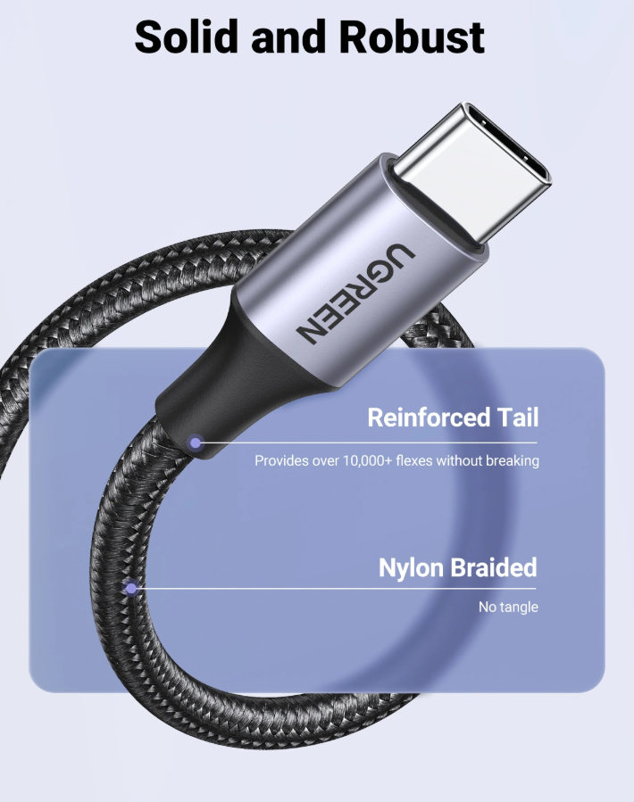 The UGREEN US288 cable is designed to be flexible and durable, offering resistance to tangling and wear. This makes it ideal for everyday use, whether you’re at home, in the office, or traveling. The cable maintains its strength and flexibility even with frequent use.